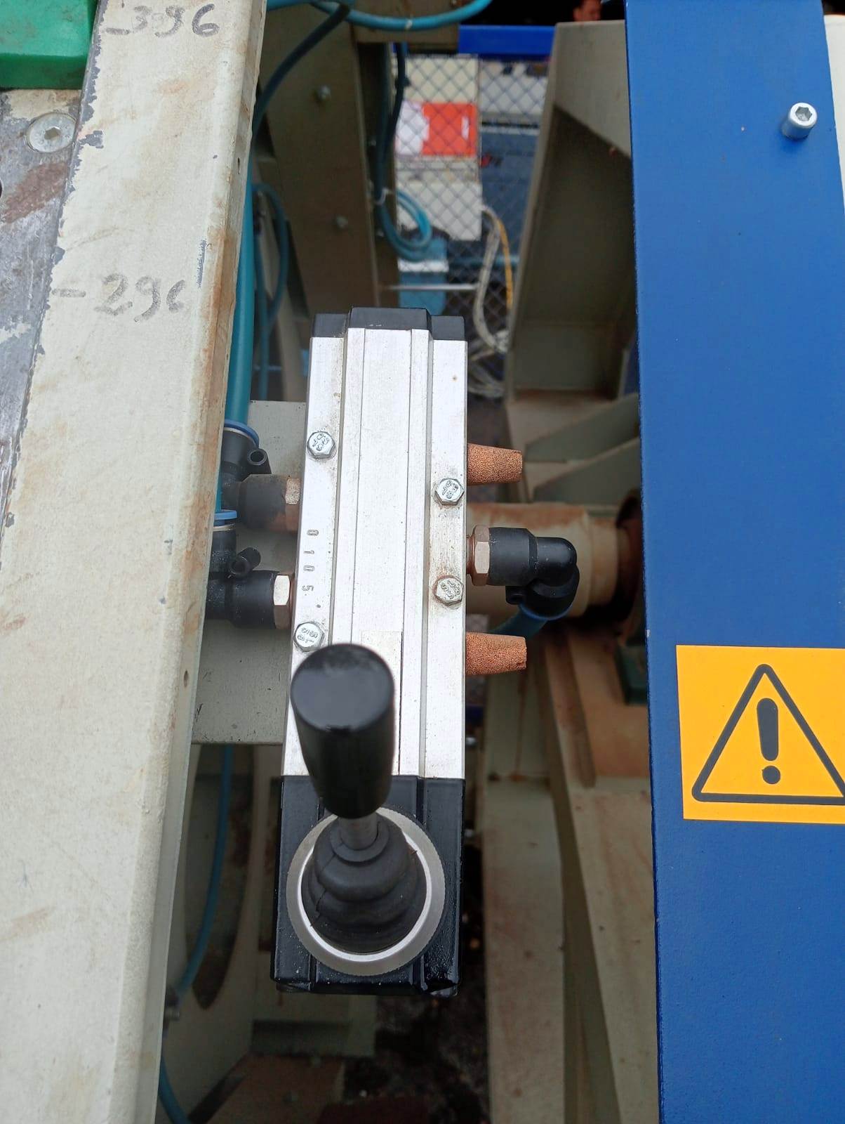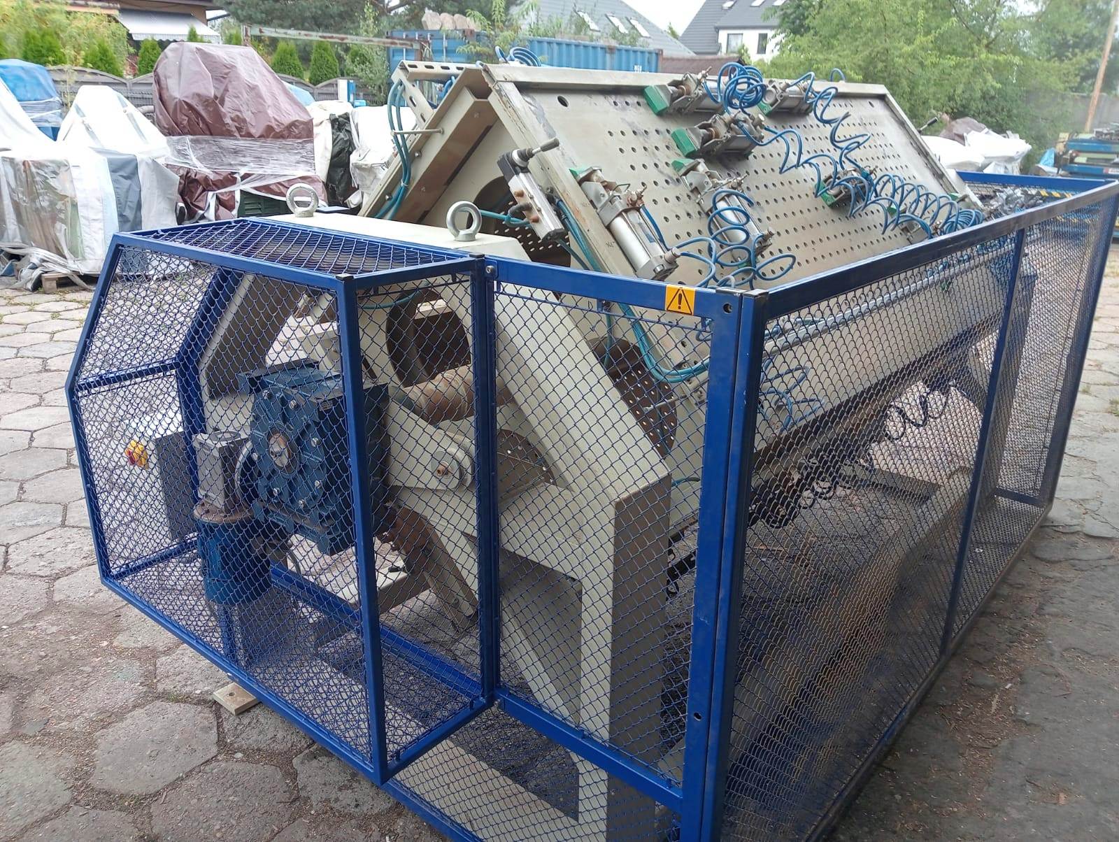 Załączenie obrotu ramy dokonujemy przyciskiem z pulpitu. Rama obracana jest motoreduktorem ślimakowym osadzonym na wale ramy. Zatrzymanie ramy odbywa się samoczynnie po zadziałaniu czujnika indukcyjnego. Zastosowane rozwiązania konstrukcyjne mocowania docisków pneumatycznych zapewniają minimalizację czasów przezbrajania.