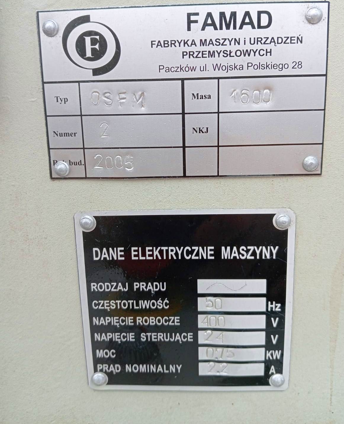 | Masa urządzenia | kg | 1600